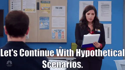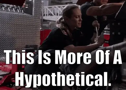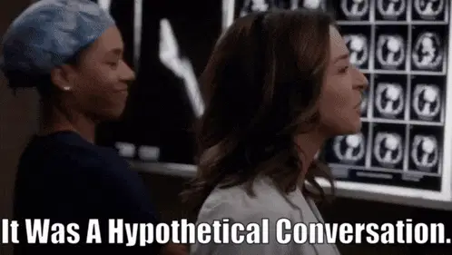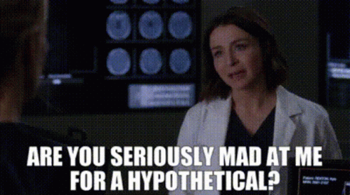 Amelia Shepherd, played by Caterina Scorsone, asks 'Are you seriously mad at me for a hypothetical?' in Grey's Anatomy.