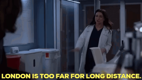 Amelia Shepherd (Caterina Scorsone) discusses the challenges of a long-distance relationship, stating "London is too far."