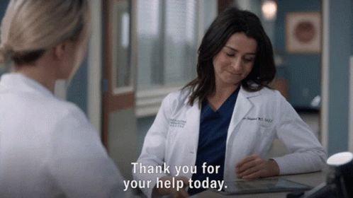 Amelia Shepherd (Caterina Scorsone) from Grey's Anatomy thanks a colleague for their help today in a hospital setting.