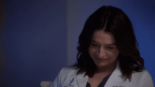 Amelia Shepherd from Greys Anatomy in a lab coat, giving a subtle, flirty smile.