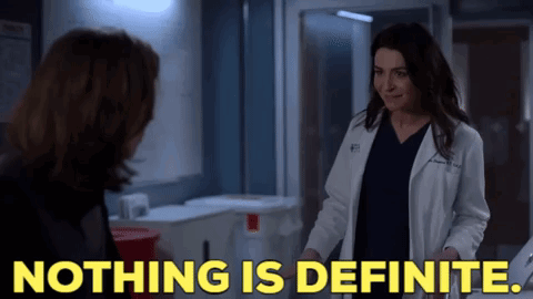 Amelia Shepherd from Grey's Anatomy emphatically states 'Nothing is definite' while gesturing in a hospital setting.