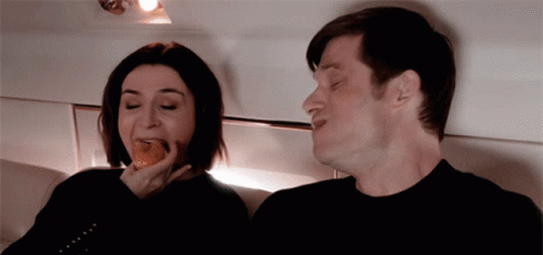Amelia Shepherd and Atticus Lincoln from Grey's Anatomy enjoy eating donuts together.