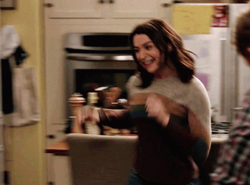 Amelia and Link share a big hug in the kitchen, a sweet moment from Greys Anatomy.