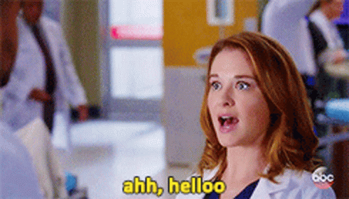 April Kepner, played by Sarah Drew, delivers her memorable 'ahh, helloo' line in Grey's Anatomy.