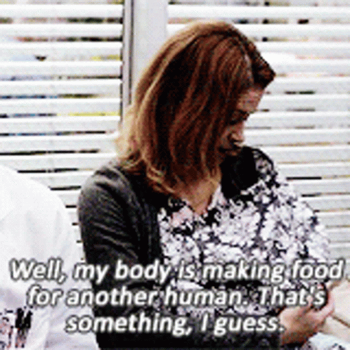 April Kepner (Sarah Drew) from Grey's Anatomy discusses making food for another human, referencing breastfeeding.