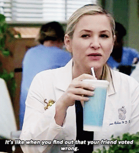 Dr. Arizona Robbins from Grey's Anatomy discusses finding out a friend voted wrong.