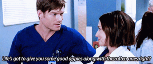 Atticus Lincoln and Amelia Shepherd discuss life's balance with good and rotten apples in Grey's Anatomy.