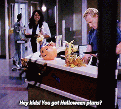 Callie Torres asks about Halloween plans in a hospital setting on Grey's Anatomy.
