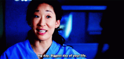 Cristina Yang (Sandra Oh) from Grey's Anatomy delivers her iconic 'Big day. Biggest day of your life' line.