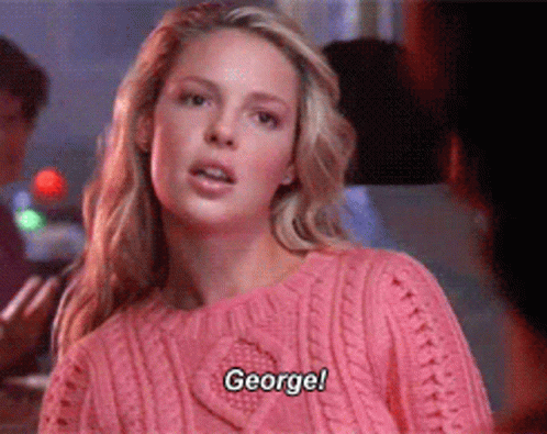 Izzie Stevens, played by Katherine Heigl, urgently calls out 'George!' in a scene from Grey's Anatomy.