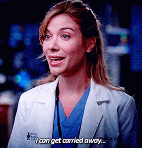 Leah Murphy (Tessa Ferrer) from Grey's Anatomy says 'I can get carried away...' in a hospital setting.