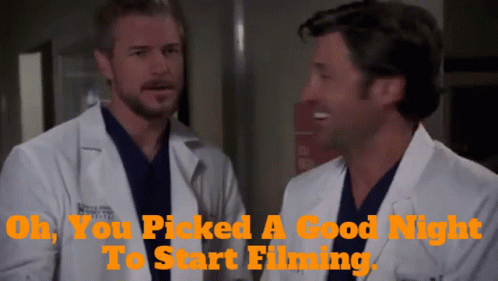 Mark Sloan (Eric Dane) delivers the line 'Oh, You Picked A Good Night To Start Filming' in this Grey's Anatomy clip.