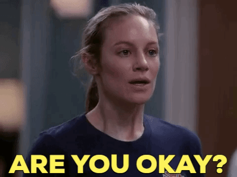 Maya Bishop (Danielle Savre) from Grey's Anatomy looking concerned and asking 'Are you okay?'