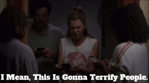 Meredith Grey (Ellen Pompeo) and friends react to terrifying news on their phones.