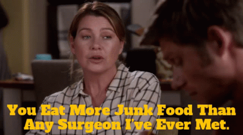 Meredith Grey tells someone they eat more junk food than any surgeon she's met in Grey's Anatomy.