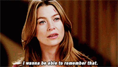Meredith Grey from Grey's Anatomy says, 'I wanna be able to remember that,' with a thoughtful expression.