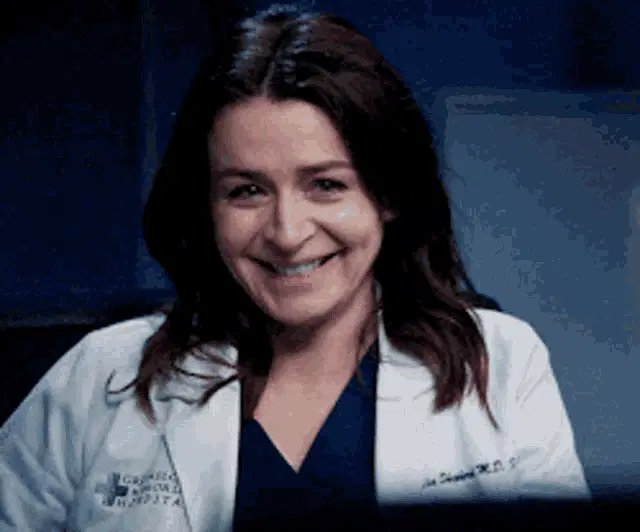 Mika Yasuda, played by Midori Francis, chuckles and says 'I know' in a scene from Grey's Anatomy.