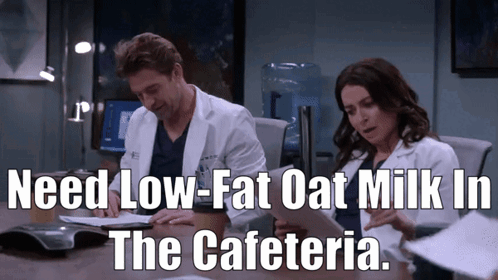 Scott Speedman as Nick Marsh in Grey's Anatomy, making a request for low-fat oat milk in the cafeteria.