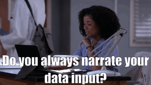 Simone Griffith (Alexis Floyd) from Grey's Anatomy asks if you always narrate your data input while working at a desk.