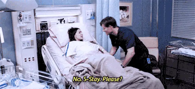 Sarah Grace White as Whitney in Grey's Anatomy, in an emotional labor scene, holding a man's hand and saying 'I can't let go'.