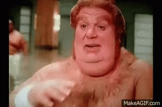 A man with red hair and a large build, resembling the Grinch, points his finger with a stern expression.