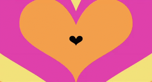 Animated pink and yellow groovy hearts expanding and contracting on a black background, creating a vibrant visual.