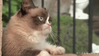 Grumpy Cat sits on a ledge, unimpressed as a Disney character, Dopey, approaches and interacts with her.