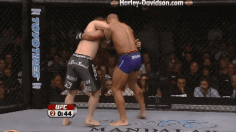 two men fighting in a ufc ring with a banner for toyo tires