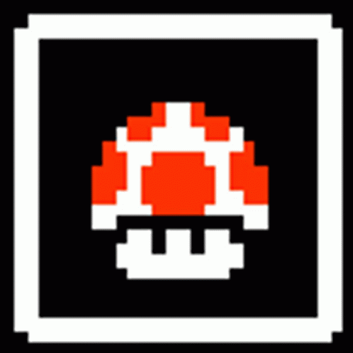 Pixel art of a red and white mushroom on a black background, associated with Gtmaster Vt.