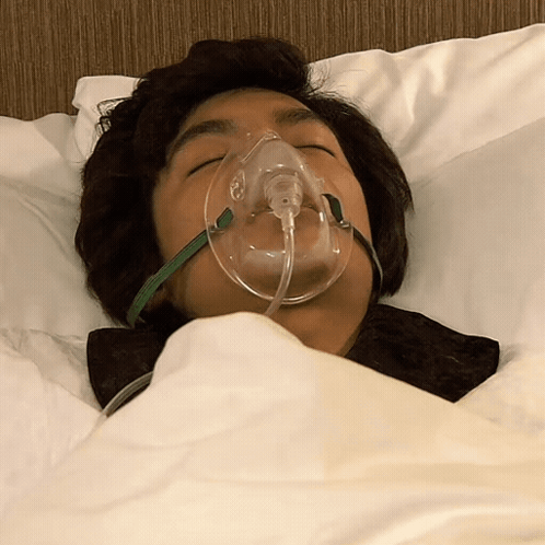 Gu Junpyo from Boys Over Flowers lies in bed, wearing an oxygen mask and appearing to sleep.