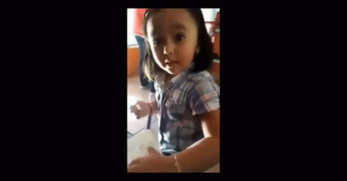 Little girl in a plaid shirt makes a funny 'Guacala' face, reacting to something off-camera with disgust.