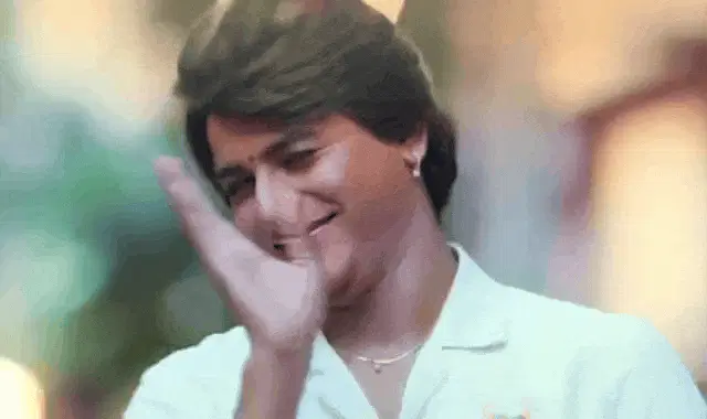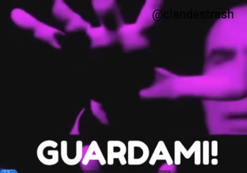 Giucas Casella passionately exclaims 'Guardami!' (Look at me!) on Grande Fratello VIP, gesturing intensely.