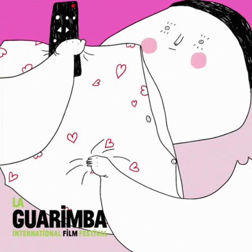 Animated character in heart pajamas, holding a remote and kissing a pillow, depicting a lonely Saturday night.