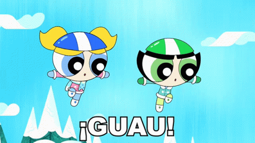 Bubbles and Buttercup from The Powerpuff Girls react with 'Wow! Seriously?' while flying in their winter outfits.