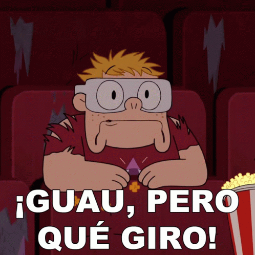 Barry, a cartoon character, reacts with a surprised 'Wow, what a twist!' in a movie theater.