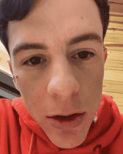 Guaynaa performs a dramatic eye roll, showing annoyance while wearing a red hoodie.