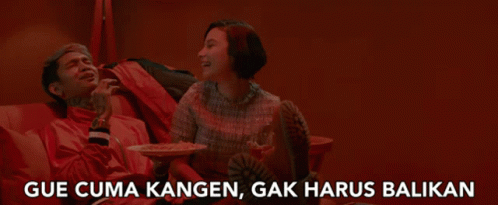 Anji and Young Lex laugh in a red-lit room, with the caption "Gue Cuma Kangen Gak Usah Balikan" (Just Missing, Don't Have to Get Back Together).