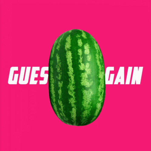 A watermelon is cut open to reveal a bottle of Mountain Dew inside, challenging viewers to 'Guess Again'.