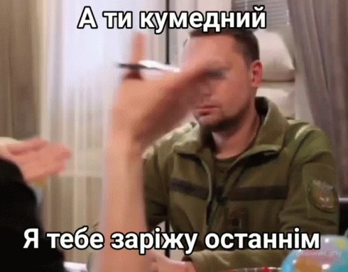 Kyrylo Budanov reacts to a humorous comment, saying 'And you are funny, I'll cut you last.'