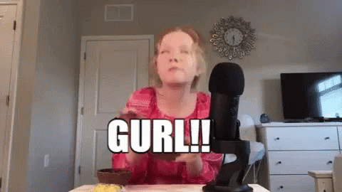 A girl performs ASMR, with the word 'GURL!!' displayed on screen, creating a playful and engaging experience.