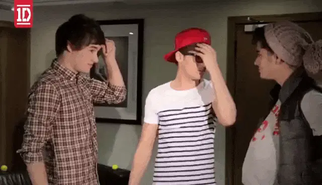 One Direction members Harry Styles, Zayn Malik, Louis Tomlinson, Niall Horan, and Liam Payne are playfully posing and clapping.