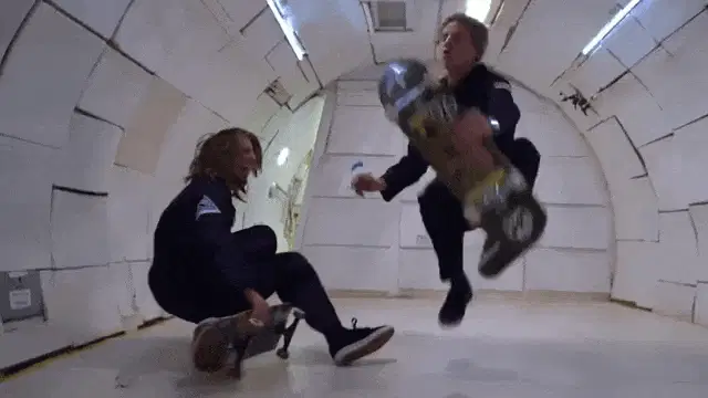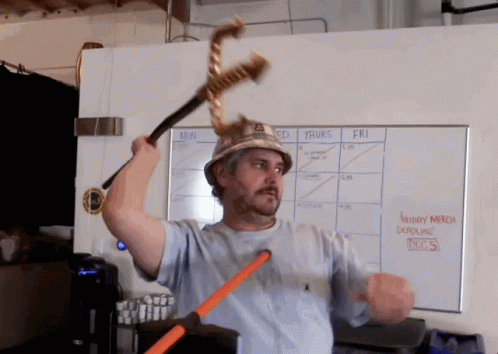 A man from H3Podcast throws a golden trident in a simulated hunt, then shrugs.