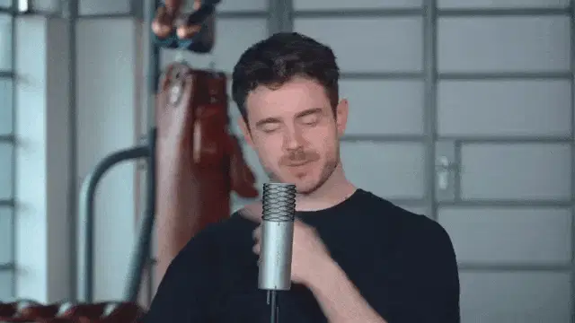 Ethan Klein celebrates his 40th birthday, seen holding a microphone with birthday candles and cake.