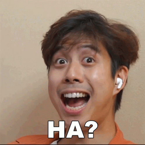 ว่านไฉ (Wahnchai) with a surprised expression and the text 'HA?' on screen, reacting to something he heard.