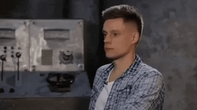 Alastor from Hazbin Hotel stands by a check-in sign, appearing to make a sound.
