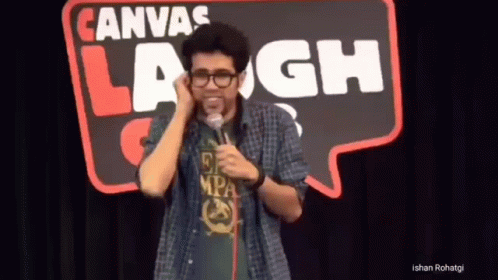 Comedian Ishan Rohatgi performs stand-up comedy at Canvas Laugh Club, engaging the audience with his act.