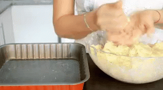 A person prepares dough for Chipa, rolling it into small balls before placing them in a baking pan.
