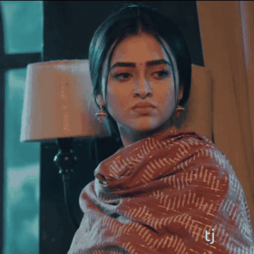 Tejasswi Prakash looking thoughtful and slightly upset, wearing a patterned shawl in an indoor setting.