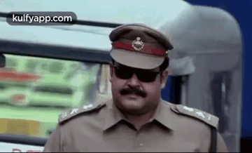Baba Kaliyani, a police officer in sunglasses, raises his hand with a serious expression.
