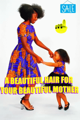 Celebrate Mother's Day with a special sale on hair extensions, featuring a mother and daughter in matching outfits.